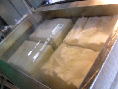 ![]() 遠心脱水機 ![]() 櫓の左半分の白い生地が練地後のもの |