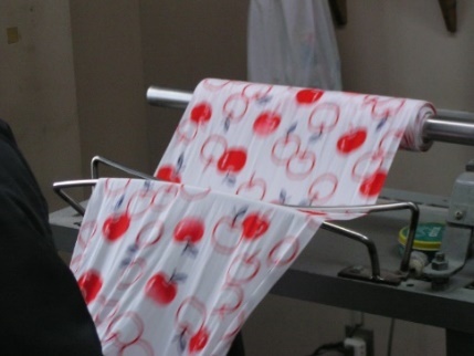 その後てぬぐいの長さにハサミで切り落とし、適度な大きさに畳み製品とする。