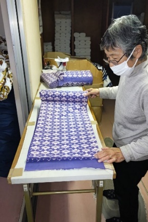 その後丸巻きまたは畳み仕上げ「ゆかた地」(反物)とする。(整理業者の工程)
