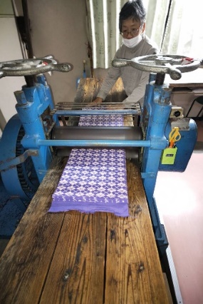 ![]() ![]() 100年以上前から簡単な皺延ばし機が使われていた。 |