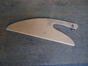 型付けの際、型付け台の上で、木枠に張った型紙をセットし、その上で、この「へら」で「防染糊」を均等に擦りつける。 スギ等のやわらかい材質の木材が使われる。 | ||