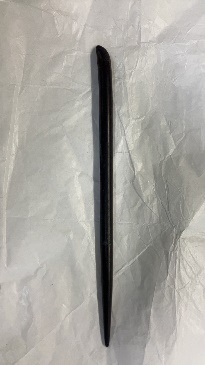エボナイト製の棒。この棒で反物を押し付けながら、ヤカンで注いだ染料の流れを誘導する。特に差分け染において指定された箇所に指定色の染料を確実に届けるのには欠かせない。緻密さを追求した東京独特の道具である。 | |