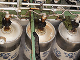 | ③ | 地巻 | 巻取機 | 乾燥した生地の検査をかねてシワ伸ばしのため巻取り機で丸巻にし1~2日ほど重ねて保管する。