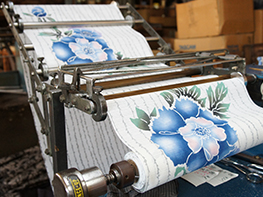 加圧ロール | 染上がって巻き取られたてぬぐい生地を、てぬぐいの長さ(90~120cm)に畳み、