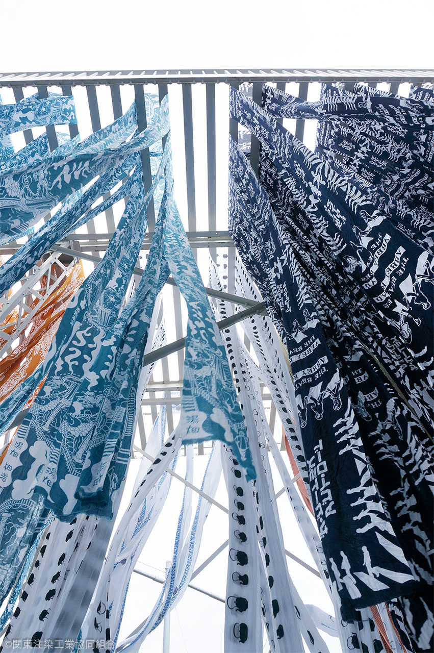 | さまざまな企業や団体とコラボレーションしながら、伝統技法を使った染の手ぬぐいを作り続けています。「早く綺麗が手染めの技、伝統染色の注染を生かす。」このことを強みとして、これからも多彩な商品を手がけていきます。 |